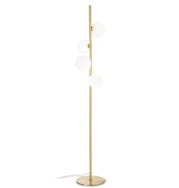 Die moderne und Designer-Stehleuchte Perlage von Ideal Lux ist eine hochwertige Beleuchtungsoption, die Ihrer Inneneinrichtung Stil und Charakter verleihen kann. Die Stehleuchte besteht aus hochwertigen Materialien und verfügt über eine in einem eleganten Messington lackierte Metallstruktur, die eine Höhe von 164 cm erreicht. Vier runde Diffusoren bestehen aus weißem Glas und sorgen für eine elegante und raffinierte Wirkung.