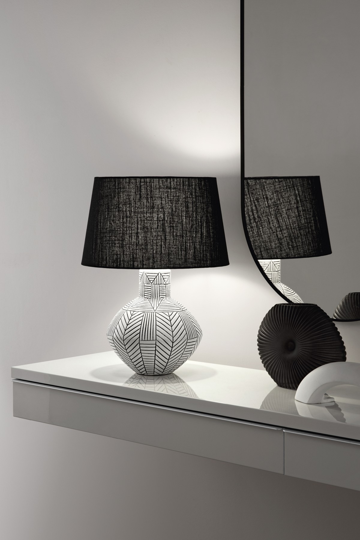 Luce Ambiente Design I-AZTEC-L Tischlampe AZTEC | 1×60W E27 | mit Schalter | weiß | schwarz