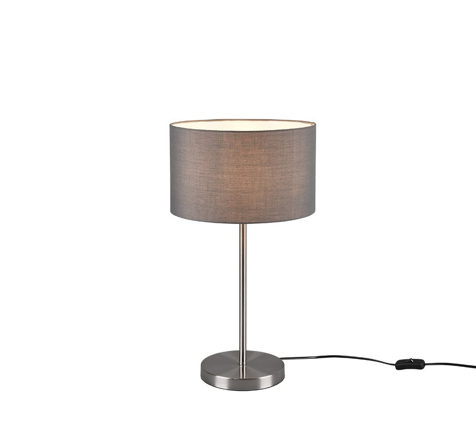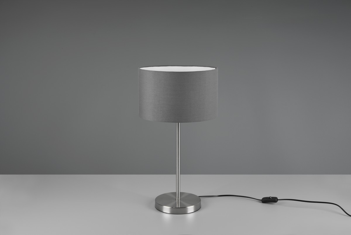 Tischleuchte Trio Hotel 511100111 eignet sich dank ihrer schlichten und minimalistischen Formen besonders für moderne Interieurs als Raumbeleuchtung. Der Schalter dieser Leuchte befindet sich am Zuleitungskabel. Der Leuchtenkörper ist aus mattem Metall und der Schirm aus Stoff in grauer Farbe.