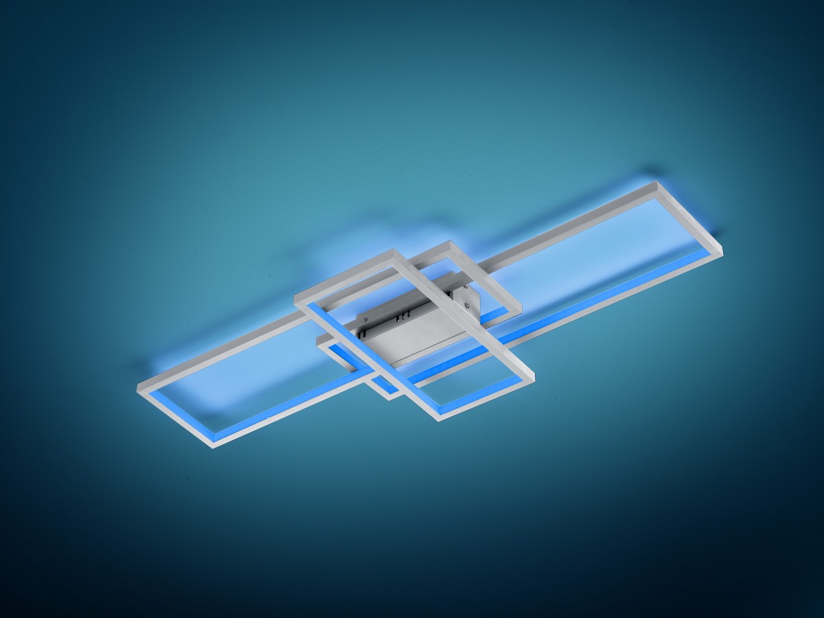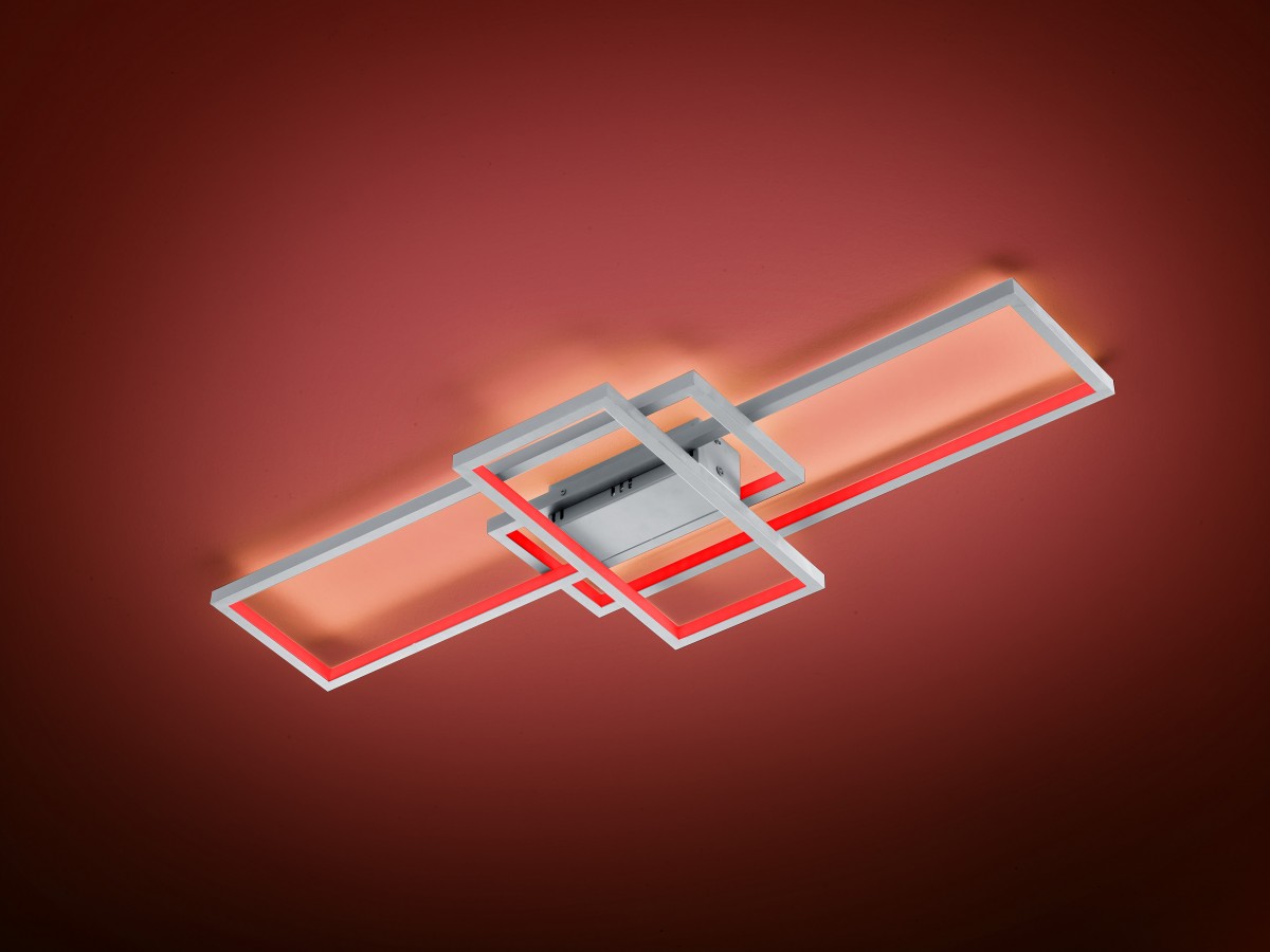 Trio gehört heute nicht nur im Design, sondern auch in der Funktionalität zu den modernen Leuchten. Er weiß wirklich viel. Dank der Aufputz-Konstruktion fügt sie sich perfekt in jeden Raum mit niedriger Decke ein. Plötzlich kann es zum dominierenden Merkmal Ihres Wohnzimmers, Esszimmers oder sogar eines Schlafzimmers werden. Der Korpus der Leuchte besteht aus einem Sockel mit 3 rechteckigen Metallrahmen, die sich überlappen und ein einzigartiges Designelement in mattem Nickel vervollständigen.