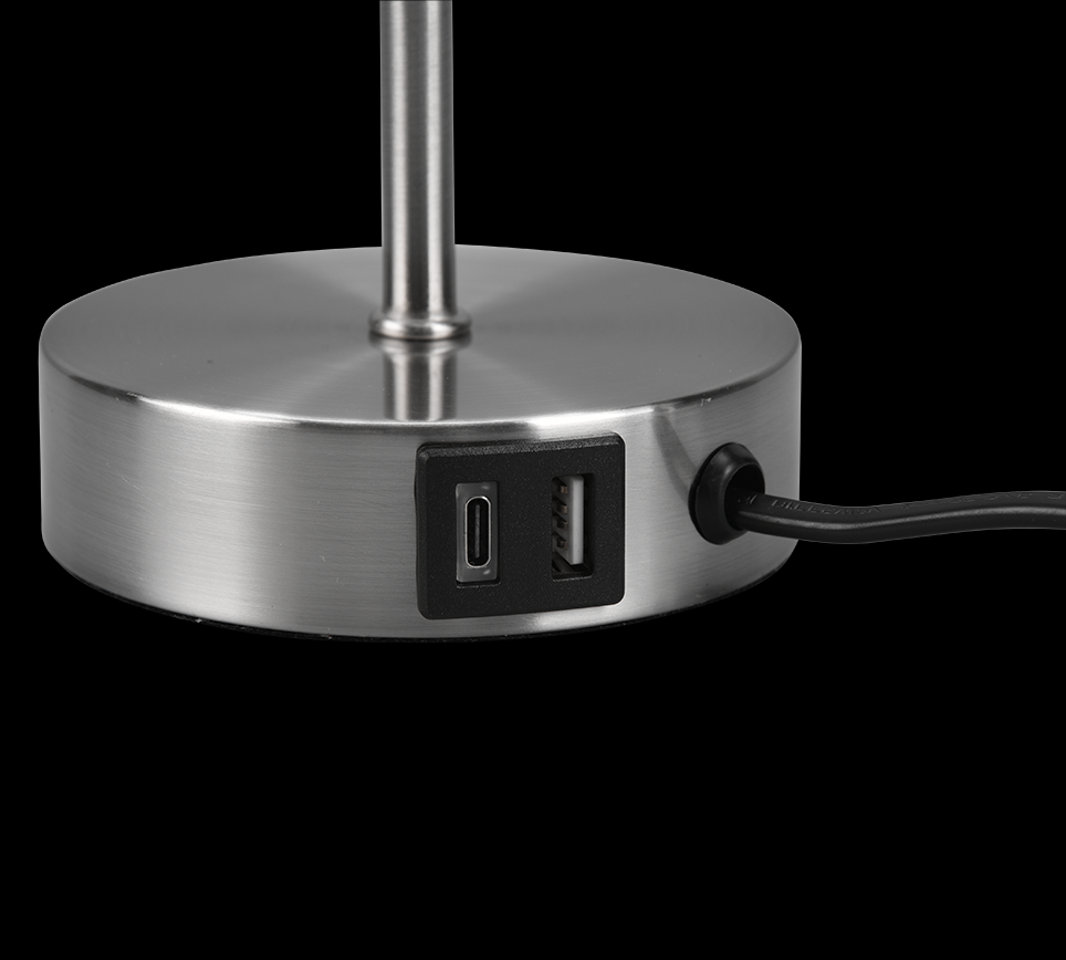 • Trio R51051007 Tischleuchte Jaro 1x25W | E27 - USB, Zugschalter, Nickel, Weiß