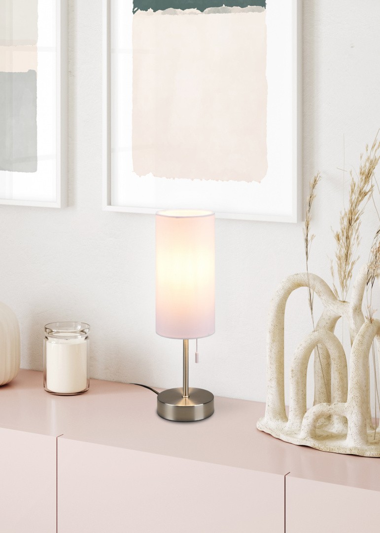 Trio R51051007 Tischleuchte Jaro 1x25W | E27 - USB, Zugschalter, Nickel, Weiß