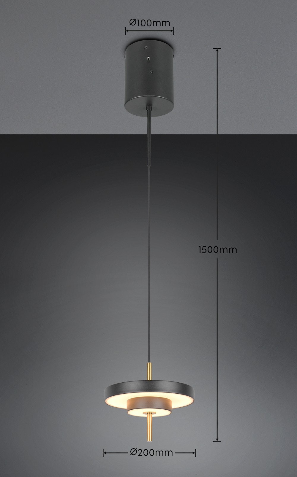 Trio T340210180 LED Pendelleuchte KEATON | 10W integrierte LED-Quelle | 1x1200lm | 2300+3000+4000K | Trio - SwitchDimmer | schwarz | gold